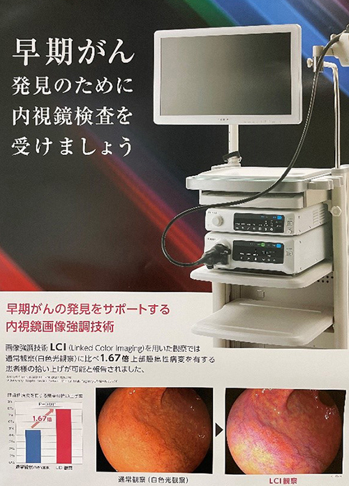 また、「BLI(Blue Laser Imaging)」「LCI(Linked Color Imaging)」と呼ばれる画像処理技術は粘膜表層の微細血管や微小な病変を観察するのに適しており、早期がんの早期発見をサポートしてくれます